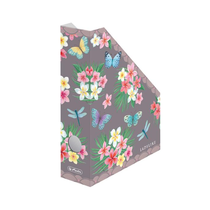 Archív na časopisy produktového radu Ladylike z vlnitej lepenky. Šírka chrbta 7,5 cm, otvor na chrbtovej strane. Rozmery 30,7 × 22,5 × 75 mm. Väčšie balenie 50 ks. Motív Motýľ
