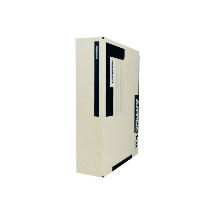 Systém archívnych boxov a škatúľ z vlnitej lepenky. Dodávané v rozloženom stave. Farba prírodná hnedá. Archívny box z hladkej ručnej lepenky, 1 000 g/ m². Konštrukčné riešenie boxu umožňuje rýchly prístup k vloženým dokumentom. Rozmery 75 × 330 × 260 mm. Väčšie balenie 25 ks. Farba čierna.