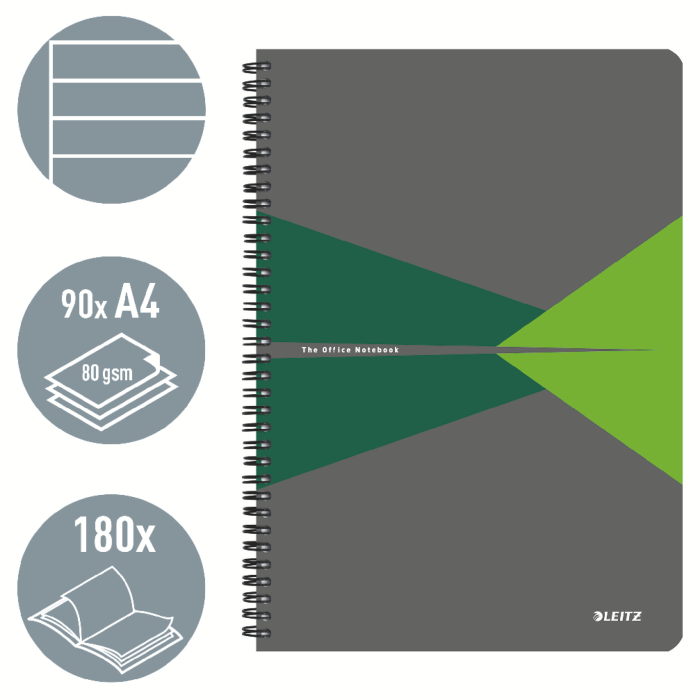 Špičkový zápisník na každodenné používanie. Každý zápisník má 90 listov papiera najvyššej kvality s gramážou 80 g/m2, drôtená väzba umožňuje 360-stupňové otváranie, laminované kartónové dosky.