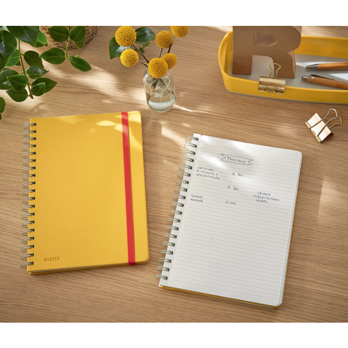 Značková kolekcia Leitz Cosy vám umožní cítiť sa ako doma, nech už vás váš pracovný deň zavedie kamkoľvek. Vďaka minimalistickému dizajnu a lákavej matnej povrchovej úprave pridáte svojmu pracovnému priestoru štýl a farbu. Zápisník Leitz Cosy veľkosti L (B5) je ideálny na každodenné písanie poznámok, pohodlne sa zmestí do tašky alebo batohu k notebooku. Tento zápisník s hebkým príjemným povrchom v prvotriednej kvalite je perfektným doplnkom vášho domova alebo kancelárie, pracovať s ním je radosť. Farba žltá.