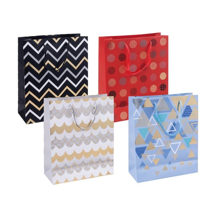 Darčeková taška DONAU HOME: - ideálna na darčekové balenie - rôzne dizajny vám umožňujú prispôsobiť ju každej príležitosti - od narodenín až po sviatky a výročia - vďaka laminovanému, matnému povrchu sa vyznačuje väčšou odolnosťou voči poškodeniu a dlhodobo si zachováva elegantný vzhľad - vyrobená z papiera s gramážou 210 g/m² - pevná šnúrková rukoväť z polypropylénu zaisťuje pohodlné nosenie - rozmery: 25 x 30 x 10 cm - farba: mix motívov