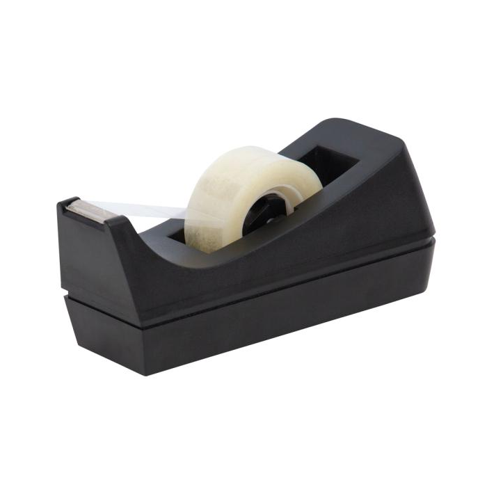 Stolový zásobník na lepiacu pásku rozmerov 19 mm × 33 m s nožom na odrezanie pásky. Dodávaný bez pásky. Farba čierna.