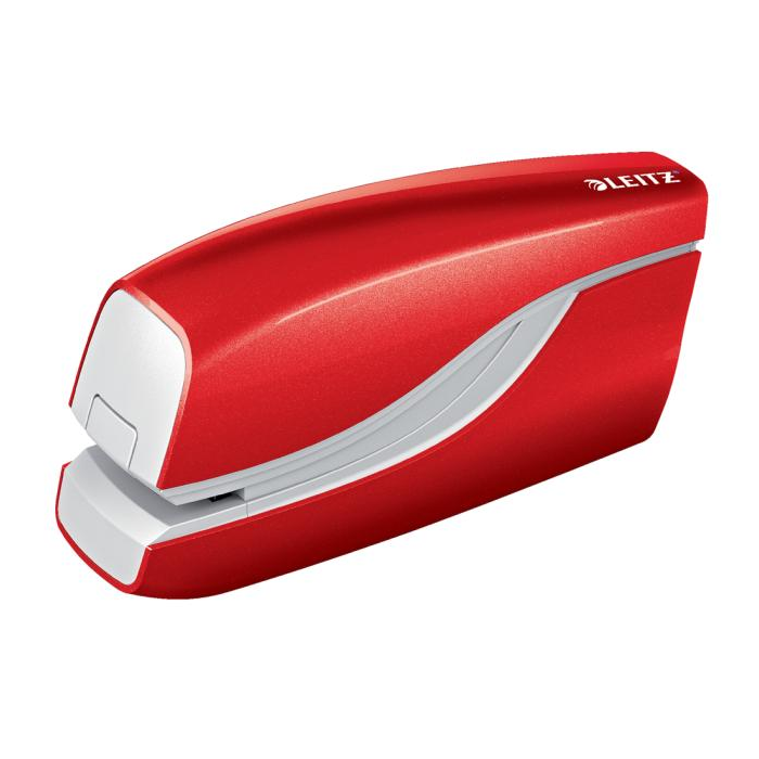 Elektrická zošívačka Leitz New NeXXt WOW. Vďaka jednoduchému ovládaniu jednou rukou je ideálna na časté používanie. Technológia s napájaním na batérie na zošívanie v pohybe. V žiarivých farbách WOW. Batérie (4× 1,5 V AAA LR03) nie sú súčasťou balenia. Kapacita 10 listov. Náhradné spinky ES556800. Farba červená.