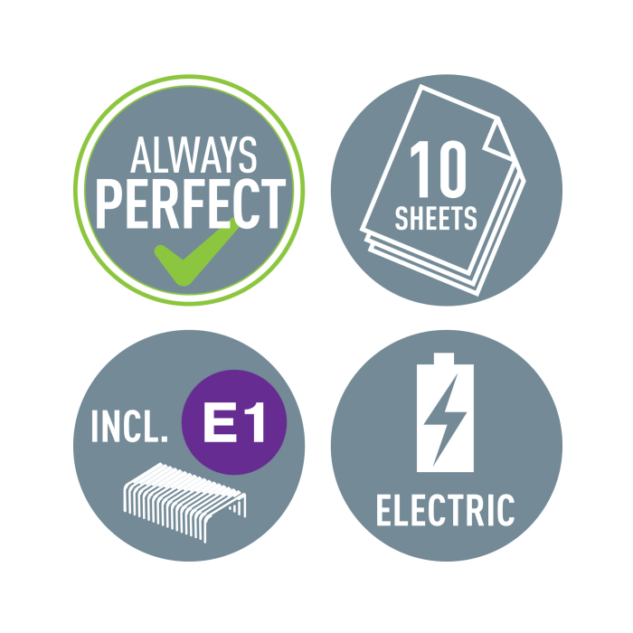 Elektrická zošívačka Leitz New NeXXt WOW. Vďaka jednoduchému ovládaniu jednou rukou je ideálna na časté používanie.