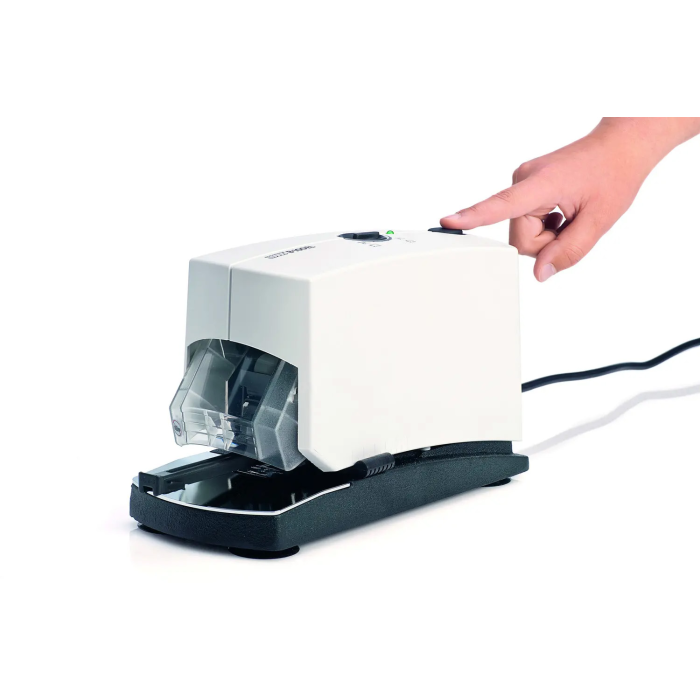 Profesionálna elektrická zošívačka v modernom dizajne pre každodenné použitie v kanceláriach. Zásobník spiniek s kovovým osadením a dvojitým vedením. Kapacita náplne 210 spiniek ozn. NE 6, NE 8. Hĺbka zošívania 5 cm. Hmotnosť 4700 g. Napájanie z elektrickej siete 230 V/ 50 Hz.
