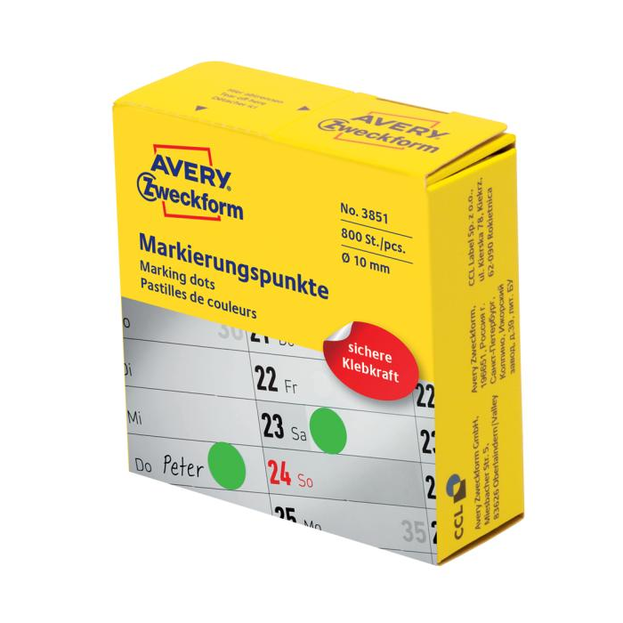 Etikety kruhové 10mm Avery zelené v dispenzore