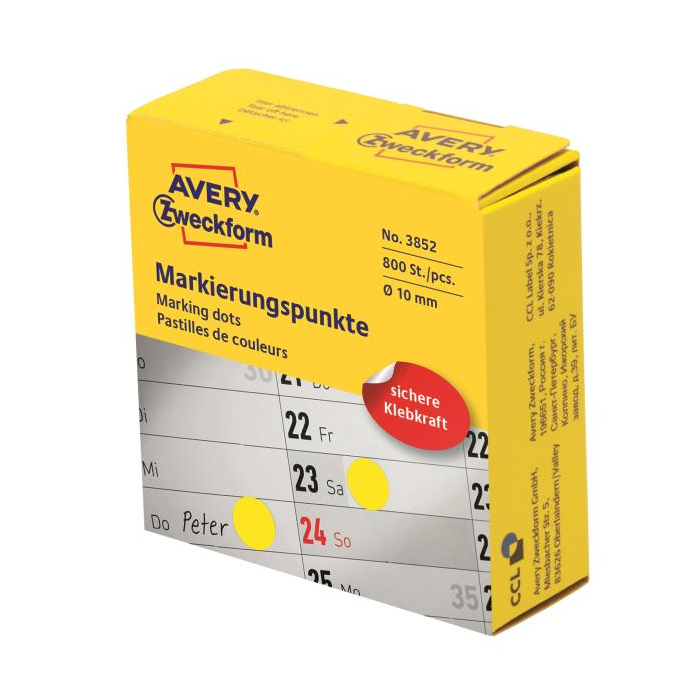 Etikety kruhové 10mm Avery žlté v dispenzore