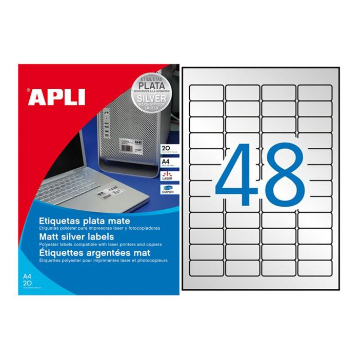 Polyesterové etikety odolné voči vplyvom počasia. Vhodné pre tlač v čiernobielych kopírkach a laserových tlačiarňach. Prevedenie metalizovaná strieborná. Rozmery: 45,7x21,2 mm Farba: strieborná
