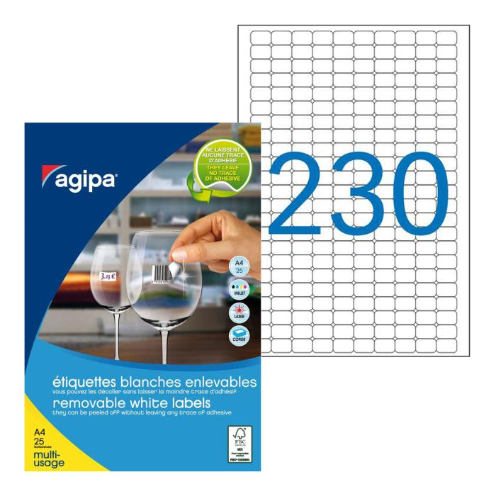 Etikety v balení po 25 hárkov pre atramentové a laserové tlačiarne. Zaoblené rohy. Gramáž papiera 140 g/ m2, hrúbka 145 mikrónov. Rozmery: 18x12 mm Počet etikiet: 5750 Balenie: 25 hárkov