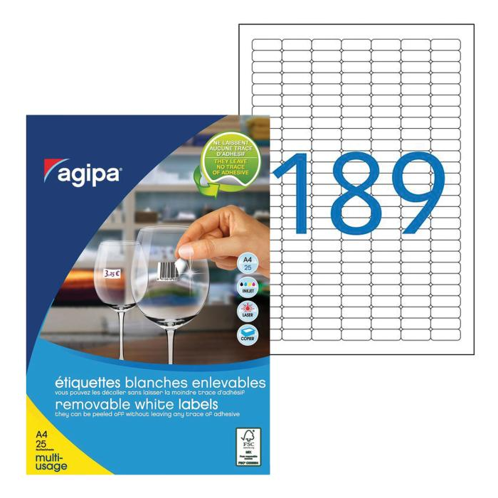 Etikety univerzálne odnímateľné 25,4x10mm Agipa A4 25 hárkov