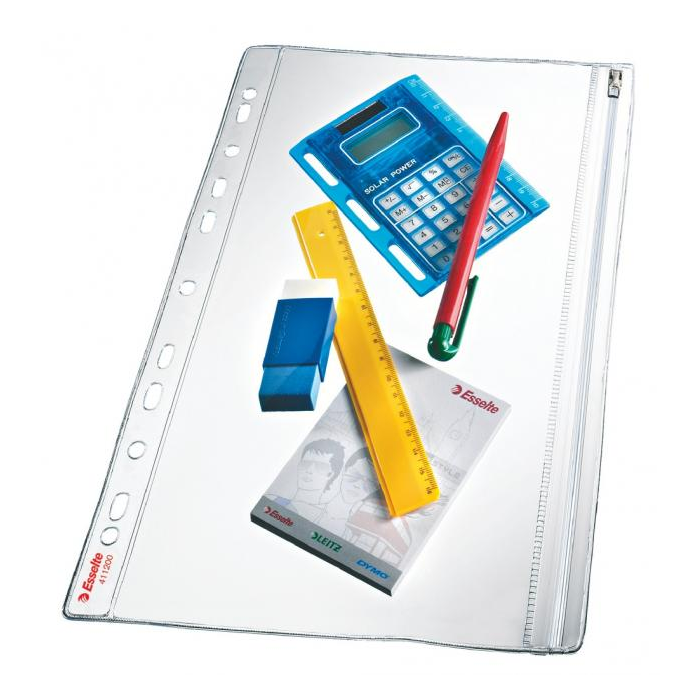 Praktický priehľadný obal A4 s eurodierovaním a kovovým zipsom na uloženie kancelárskych drobností. Balenie 5 ks.