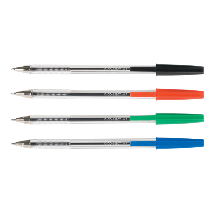 Jednorazové guľôčkové pero s priehľadným telom a viditeľnou farbou atramentu. Guľôčka 1 mm, širka stopy 0,7 mm. Väčšie balenie 20 ks v jednej farbe. Farba: modrá