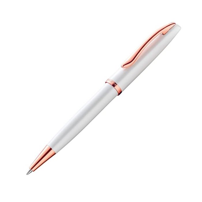 Elegantné guľôčkové pero Jazz Noble s praktickým otočným mechanizmom, kovovým telom a pružným klipom v tvare zobáka Pelikána. Šírka hrotu 1mm. Náhradná náplň obj. kód PE9154 39.