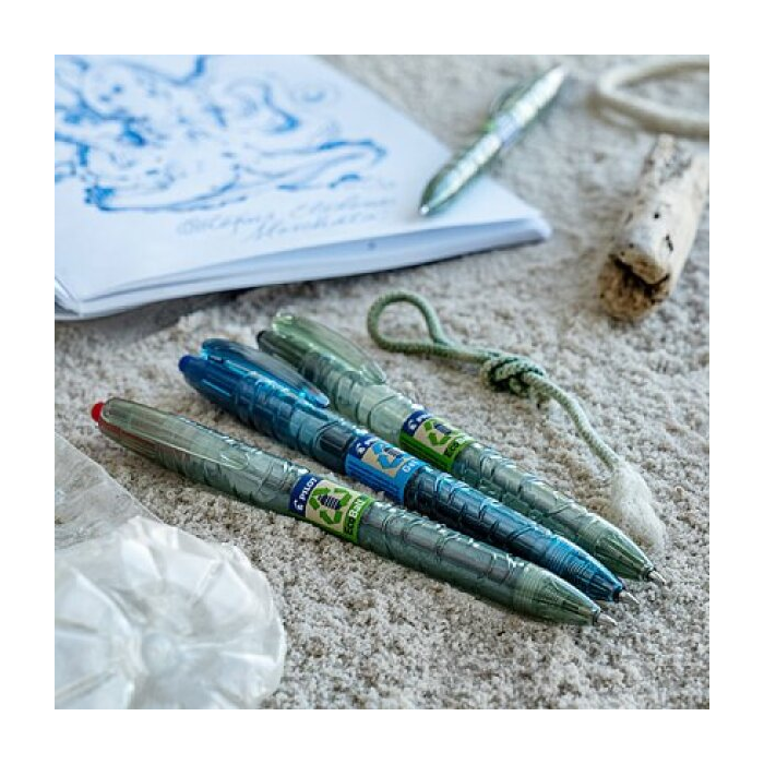 Guľôčkové klikacie pero Pilot Eco Ball B2P. Klasika od renomovanej firmy Pilot. Vyrobený z 86,64% recyklovaných plastových fliaš, z ktorých 2,5% sú recyklované oceánske plasty. Toto stláčacie guľôčkové pero s vymeniteľnou náplňou ponúka skutočné pohodlie pri písaní vďaka atramentu s olejovou zložkou, ktorá umožňuje hladké kĺzanie pera po papieri. Guľôčka 0,5 mm. Šírka stopy: 0,27 mm. Farba červená.