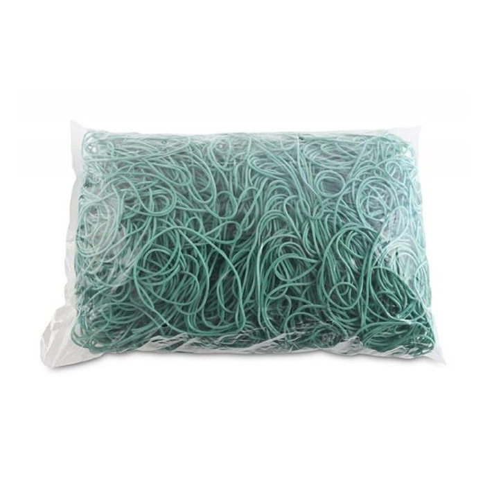 Odolné a pružné gumičky vyrobené z materiálu s prímesou gumy (60 %). Rozmery (hrúbka × šírka) 1,5 × 1,5 mm. Priemer 80 mm. Farba zelená.