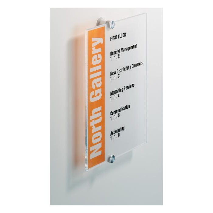Tabuľka na dvere z novej rady v elegantnom, atraktívnom, a zároveň jednoduchom dizajne. Dodávaná s 2 polopriehľadnými vnútornými listami, vhodnými na farebnú alebo čiernu potlač. Listy sa vložia medzi akrylové panely tabuľky a tabuľka sa prichytí k stene alebo dverám 2 veľkými hliníkovými skrutkami. Ľahká montáž, názorný návod je priložený.