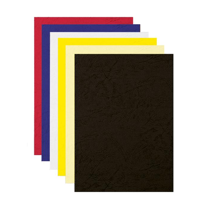Kartón 250 g. Z jednej strany povrchová reliéfna úprava v imitácii kože, z druhej strany hladká.