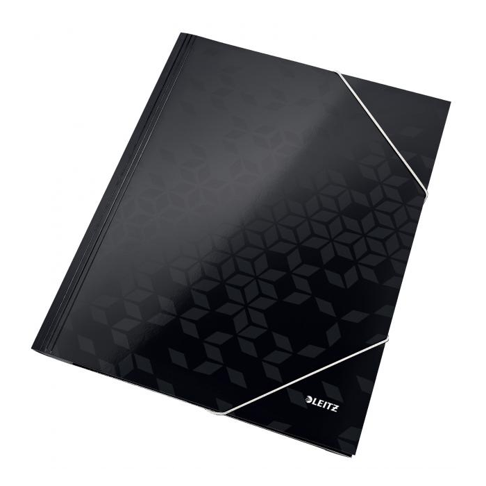 Obal s tromi chlopňami a elastickými gumičkami rady WOW v žiarivej farbe zo špeciálneho kartónu s perfektným farebným efektom. PP laminácia chráni farby a dáva výrobku lesklý vysokokvalitný vzhľad. Farba: čierna