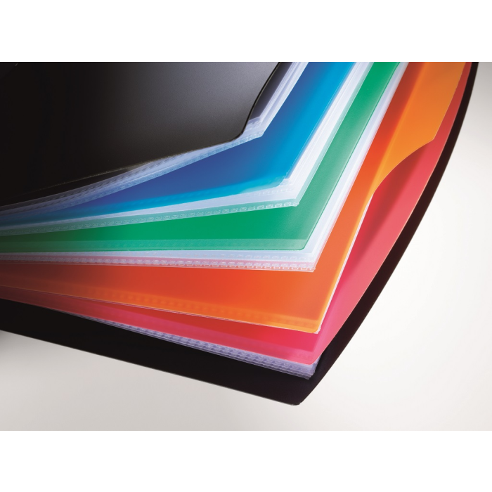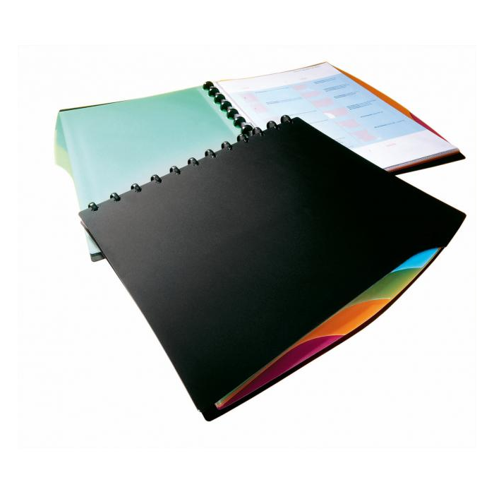 Štýlová katalógová kniha formátu A4 dodávaná s 20 obalmi a 4 farebnými rozraďovačmi. Rozšíriteľná náhradným balením obalov obj. kód DU2428 19 do maximálnej kapacity 35 obalov.