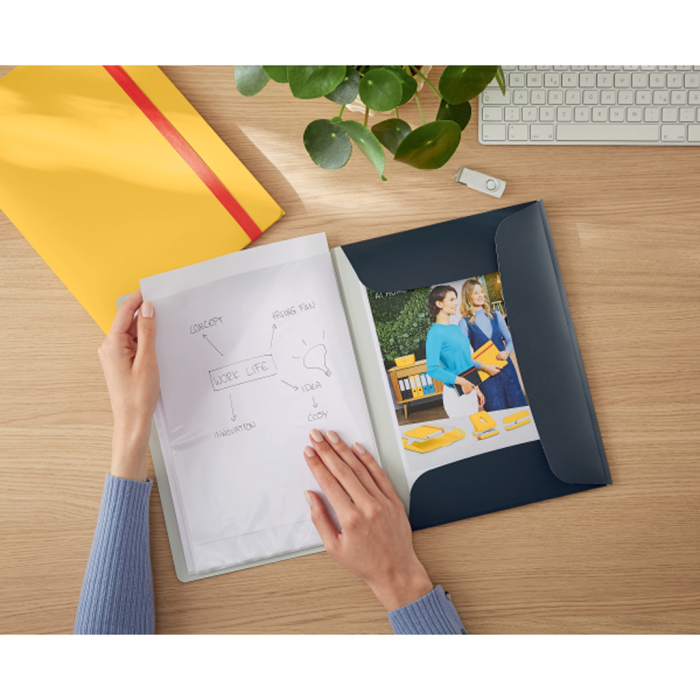 Značková kolekcia Leitz Cosy vám umožní cítiť sa ako doma, nech už vás váš pracovný deň zavedie kamkoľvek. Vďaka minimalistickému dizajnu a lákavej matnej povrchovej úprave pridáte svojmu pracovnému priestoru štýl a farbu. Katalógová kniha Leitz Cosy A4 je ideálna na prezentáciu alebo ukladanie dokumentov, dokumenty chráni a umožňuje ich jednoduché prezeranie. Praktické integrované 3-chlopňové dosky vzadu rozširujú celkovú kapacitu. Tento prémiový organizér dokumentov je perfektným doplnkom či už domov alebo do kancelárie, uľahčí a spríjemní vám prácu s dokumentmi.