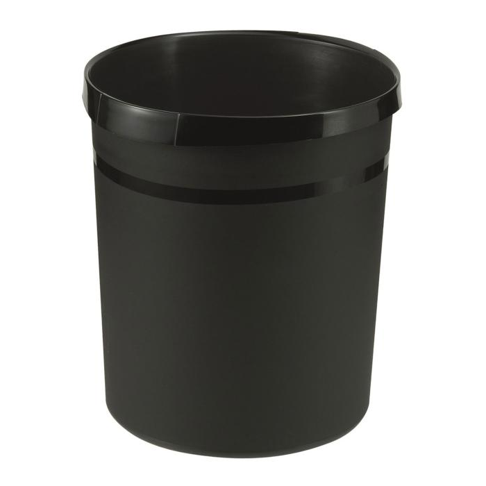 Kancelársky plastový kôš na papier HAN vybavený obrubou na uchytenie. Matný vonkajší a lesklý vnútorný povrch umožňuje jeho bezproblémové čistenie. Objem 18 litrov. Farba: čierna Objem: 18 l