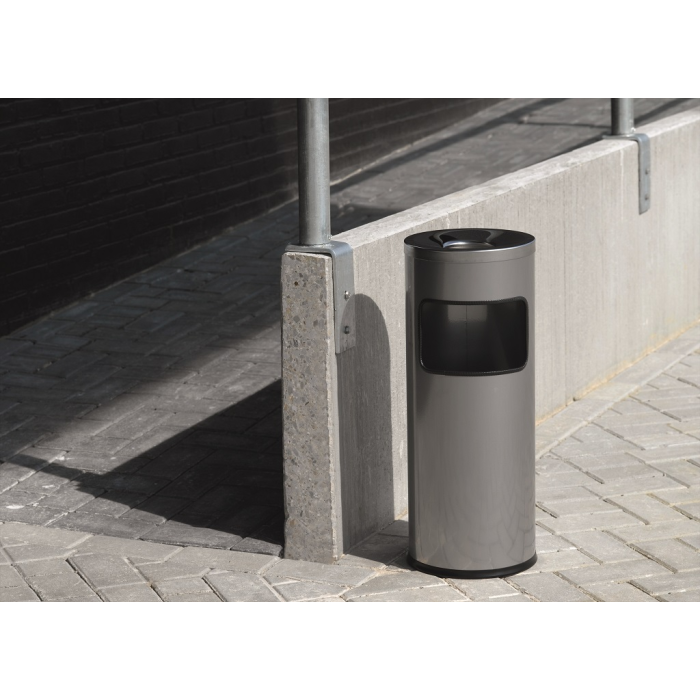 Smetný kôš na papier a popolník v jednom. Objem koša 17 l, výška 630 mm, priemer 250 mm. Objem popolníka 2 l, výška 60 mm, priemer 240 mm. Farba: strieborná