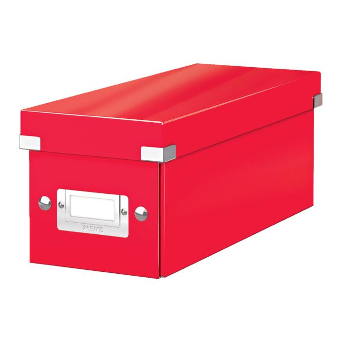 Multifunkčná atraktívna archivačná krabica vo výraznej farbe WOW vhodná na použitie v kancelárii i v domácnosti. CD alebo DVD v klasických plastových obaloch. Pevné a stabilné prevedenie. Materiál silný drevnatý kartón potiahnutý laminom. Úchyty, miesto na štítok, vystužené rohy krabice a spojovacie cvoky vyrobené z kovu. Krabica dodávaná rozložená. Veľmi skladná pri nepoužívaní. Rozmery 143 × 352 × 136 mm. Väčšie balenie 6 ks. Farba červená.