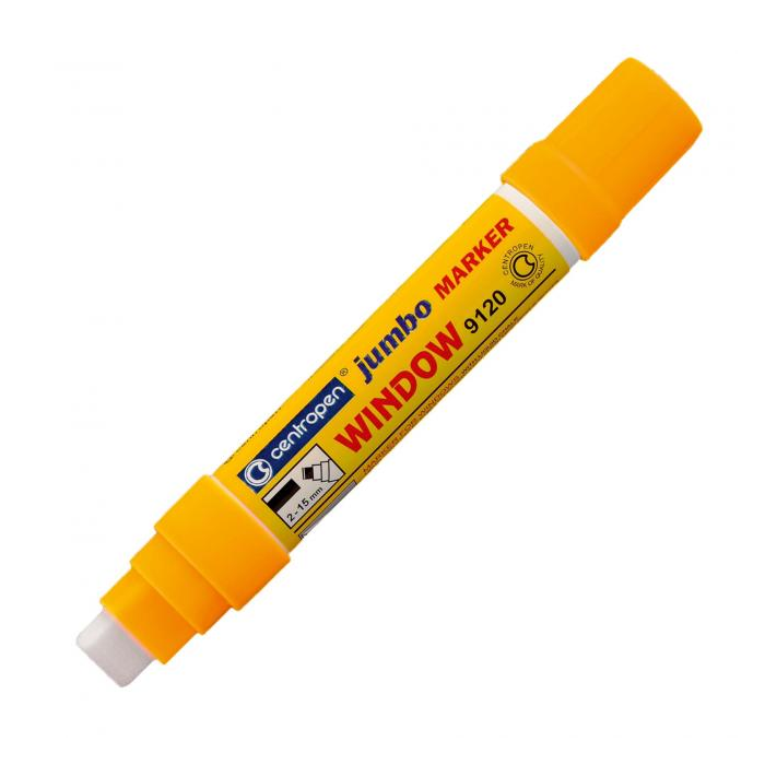 Špeciálny popisovač na okná, zrkadlá, výklady. Tekutá krieda na vodnej báze so silnými krycími schopnosťami, stierateľná. Zrezaný hrot, šírka stopy 2 - 15 mm. Väčšie balenie 5 ks v jednej farbe. Farba oranžová.