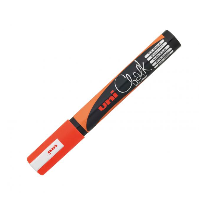 Kriedové popisovače s možnosťou použitia pre priemysel, dekoráciu, informačné tabule a hobby. Na čistých a odmastených neporéznych povrchoch text po zaschnutí odoláva vode a UV, ale je stierateľný vlhkou handričkou. Vhodné na okná, zrkadlá, kovové a plastové povrchy. Hrot guľatý, šírka stopy 1,8 - 2,5 mm. Farba neónovooranžová.