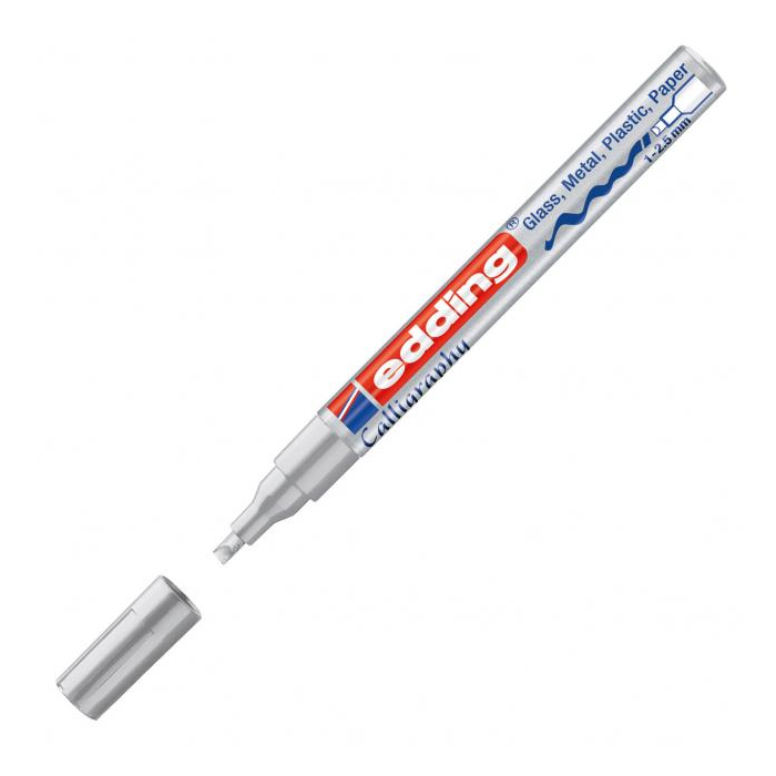 Lakový popisovač s hliníkovým obalom, vhodný pre vodovzdorné písanie, značkovanie a kreslenie na takmer všetky materiály. Kaligrafický hrot, šírka stopy 1 - 2,5 mm. Väčšie balenie 10 ks. Farba: strieborná.