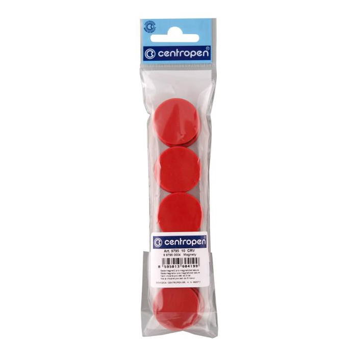 Silné magnety pre magnetické tabule zaliate v plaste. Balenie 10 ks. Farba červená.