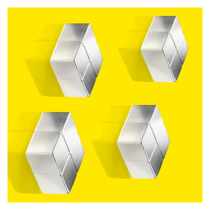 Štýlové neodymové magnety s lešteným povrchom v tvare kocky s vysokokvalitným obalom z hliníka v titánovo sivej farbe udržia na sklenenej tabuli artverum® cca 8 hárkov papiera. Rozmery 11 × 11 × 11 mm. Balenie 5 ks.