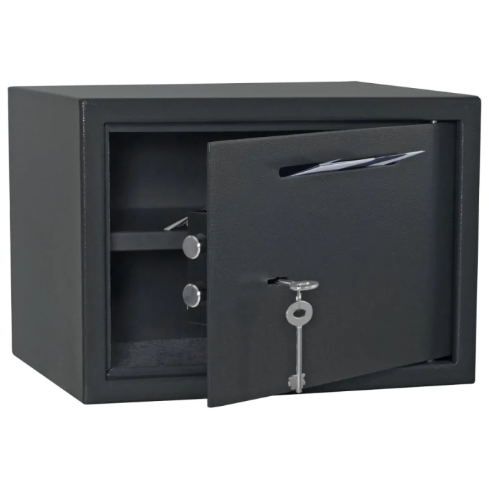 Nábytkový sejf z modelovej rady Jupiter má klasický trezorový zámok dodávaný spolu s 2 kľúčmi. Vo vnútri sejfu nájdu svoje miesto malé cennosti, doklady, hodinky alebo menšie šperky. Sejf je možné ukotviť prostredníctvom pripravených otvorov na spodnej aj zadnej strane. Materiál na ukotvenie je súčasťou balenia.