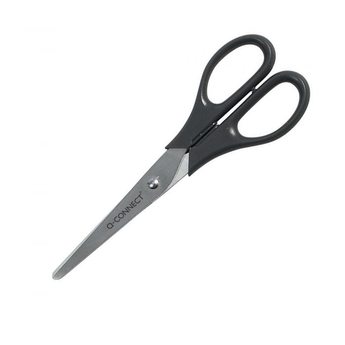 Univerzálne kancelárske nožnice na strihanie papiera, kartónu, lepenky, samolepiacej pásky a pod. so strihacou časťou z nehrdzavejúcej ocele. Farba čierna.