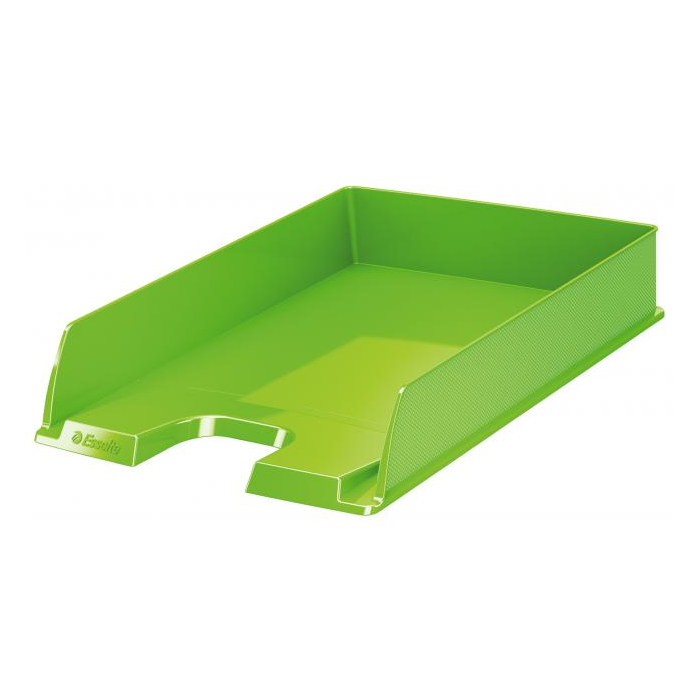 Moderný odkladač na uloženie dokumentov formátu A4 s unikátnym embosovaným povrchom po boku odkladača a v sviežich farbách radu Esselte VIVIDA. Možnosť kolmého alebo predsadeného stohovania, zaoblený výrez pre jednoduchší prístup k dokumentom. Materiál polystyrén. Rozmery 254 × 350 × 61 mm. Farba zelená.