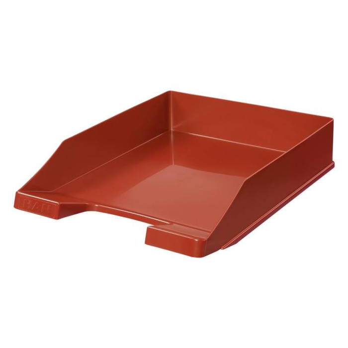 Stohovateľný odkladač formátu A4 z nepriehľadného plastu. Zadné zarážky umožňujú odkladače stohovať aj stupňovito dozadu. Väčšie balenie 10 ks. Farba: červená