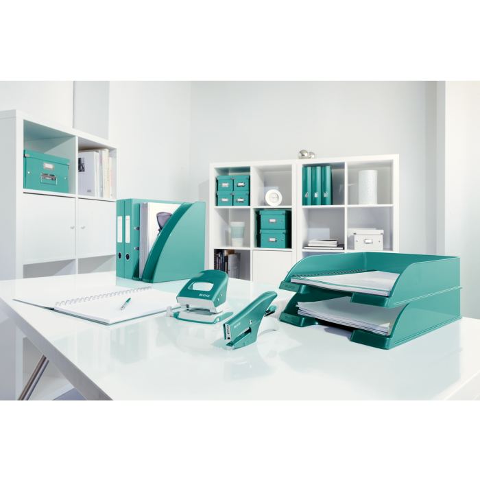 Ľahko stohovateľný plastový odkladač formátu A4 rady WOW v žiarivej farbe s možnosťou stohovania aj stupňovito dozadu. Použiteľný samostatne alebo stohovateľný do odkladacej steny. Vyššie bočné steny pre väčšiu kapacitu, extra veľký výrez na prednej časti a zošikmená odkladacia plocha na jednoduchý prístup k dokumentom. Maximálna stohovateľnosť 10 odkladačov. Väčšie balenie 5 alebo 10 ks. Farba: ľadovo modrá