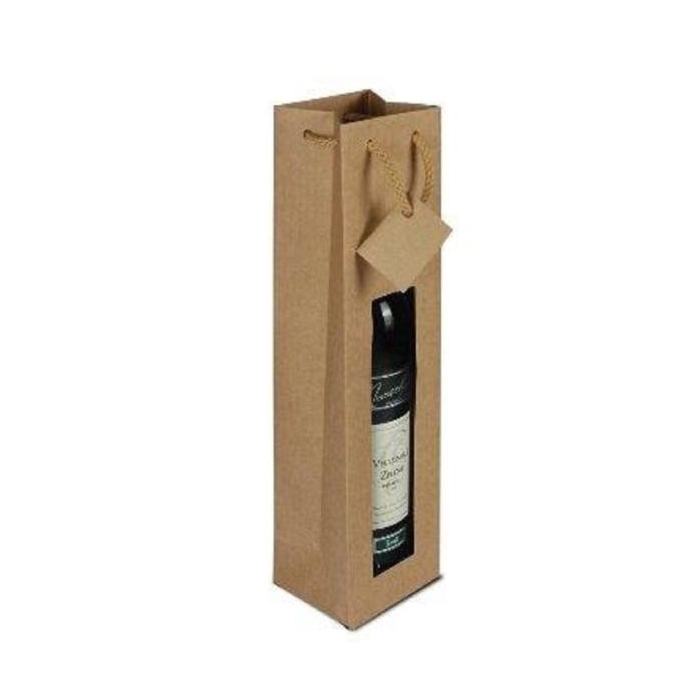 Papierová taška na 1 fľašku vína s okienkom. Taška má bavlnené ušká na nesenie. Ideálne riešenie na darčekové balenie. Farba hnedá.