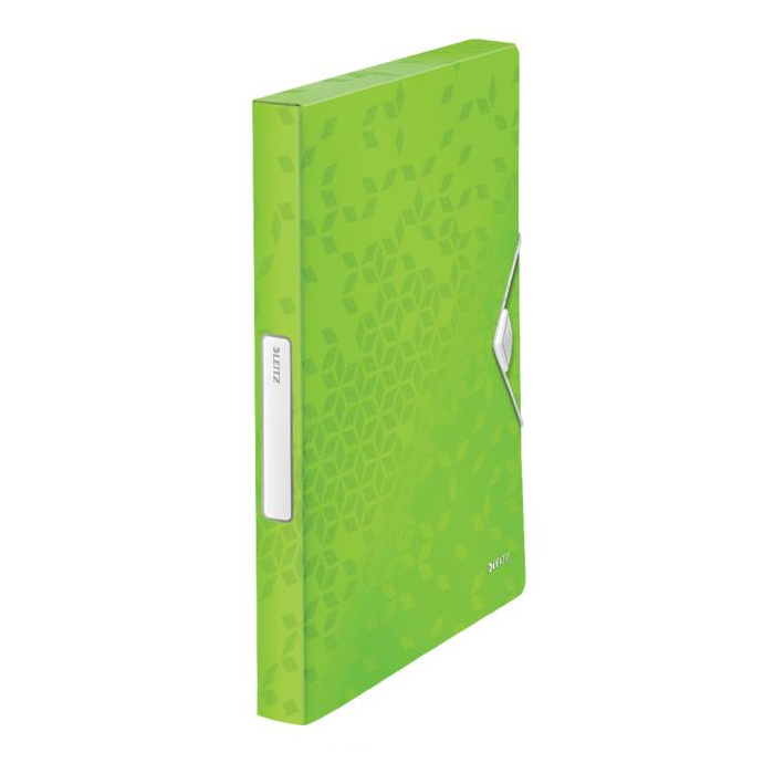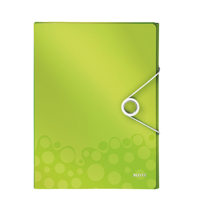 Nepriehľadný polypropylénový box na prenos objemnejších spisov, cenníkov, katalógov a pod. do formátu A4. V dizajne rady WOW v žiarivých farbách. Praktické zatváranie gumičkou na kovový krúžok. Rozmery (v × h × š) 330 × 250 × 37 mm. Väčšie balenie 5 ks. Farba metalická zelená.