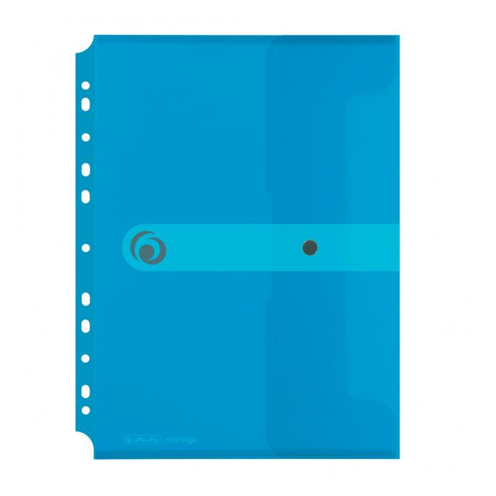 Plastové obaly Herlitz Easy Orga z priehľadného PP s uzatvárateľnou klopou s cvočkom a eurodierovaním. Formát A4, kapacita 200 listov. Farba priehľadná modrá.
