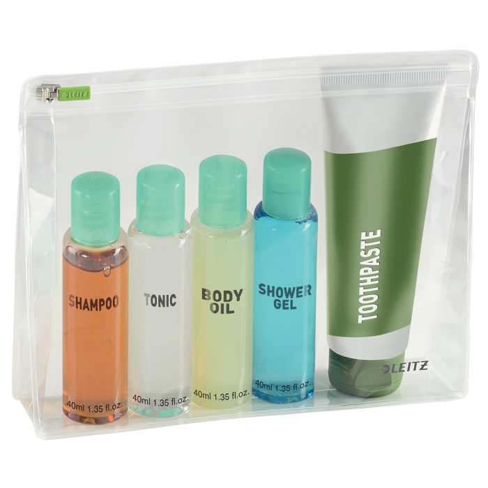 Viacúčelové cestovné obaly Leitz znamenajú poriadok, efektívnu organizáciu a prehľadnosť - vaša príručná batožina bude zabalená za niekoľko minút! Jednoduchý a ľahký systém organizácie, vďaka vysoko kvalitnej čírej fólii ihneď vidíte obsah obalu. Rôzne veľkosti pre rôzne použitie. Materiál PVC. Balenie 2 ks. Veľkosť 220x45x175 mm.