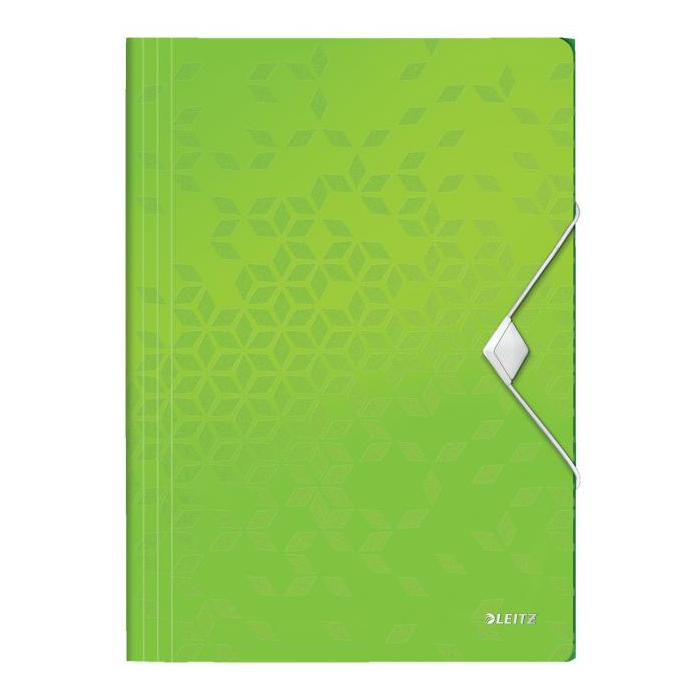 Trojchlopňový obal na dokumenty do formátu A4 z polypropylénu. V dizajne rady WOW v žiarivých farbách. Uzatváranie uchytením na gumičku. Kapacita 150 listov. Väčšie balenie 10 ks. Farba metalická zelená.