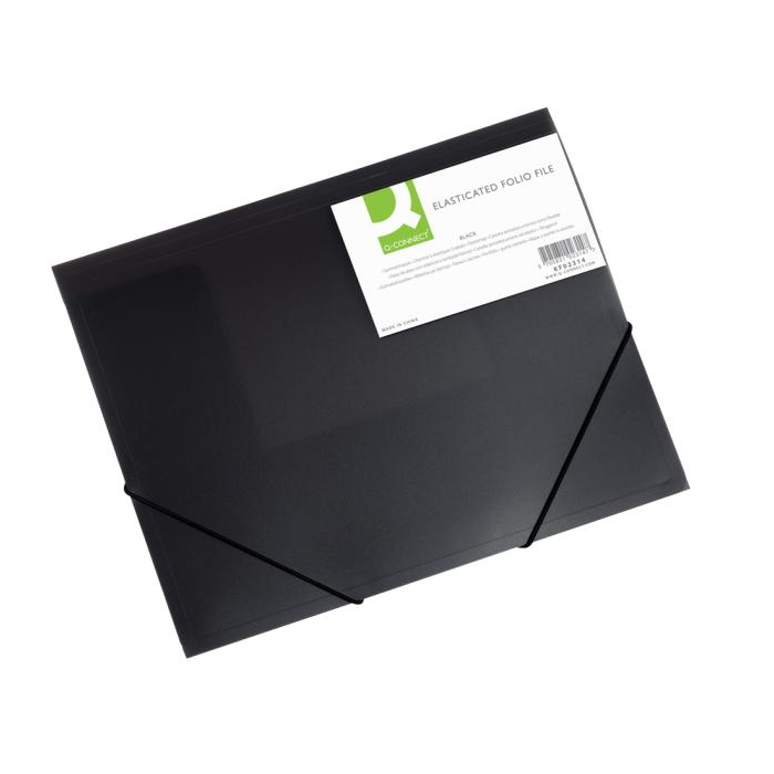 Transparentný plastový obal formátu A4 s tromi chlopňami z polypropylénu s gumičkou. Farba čierna.