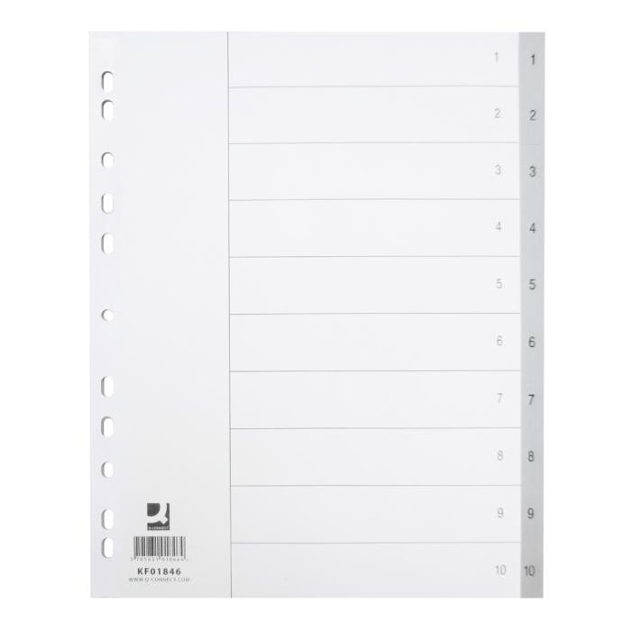 Plastový rozraďovač Q-CONNECT 10-dielny maxi sivý