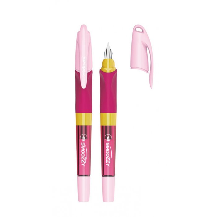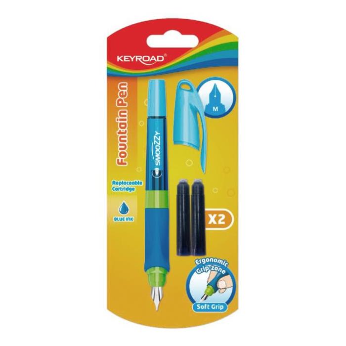 Písacie plniace pero KEYROAD Smozzy, ideálne na učenie písania v škole aj doma. Má ergonomický, pogumovaný profil rukoväte, vhodné pre pravákov aj ľavákov. Vysoko kvalitný hrot z nehrdzavejúcej ocele hrúbka čiary písania: 0,7 mm. Umývateľný modrý atrament. Balenie: blister. Farba: mix farieb.