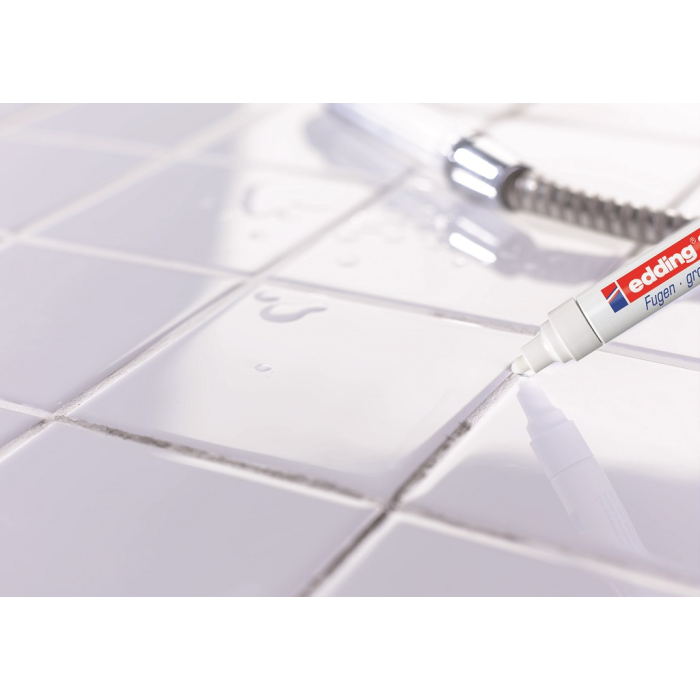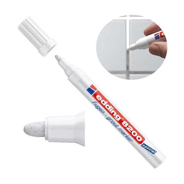 Popisovač na škáry s guľatým hrotom, stály, vode odolný, s atramentom slabého zápachu a výslednou úpravou matného laku. Zlepšuje farbu škáry medzi dlaždicami v oblasti hygieny, ako sú napr. kúpeľne a kuchyne. Dodávaný vrátane 3 náhradných hrotov. Pumpovací systém atramentu, pred použitím popisovač pretrepte, potom odstráňte vrchnák a napumpujte atrament.