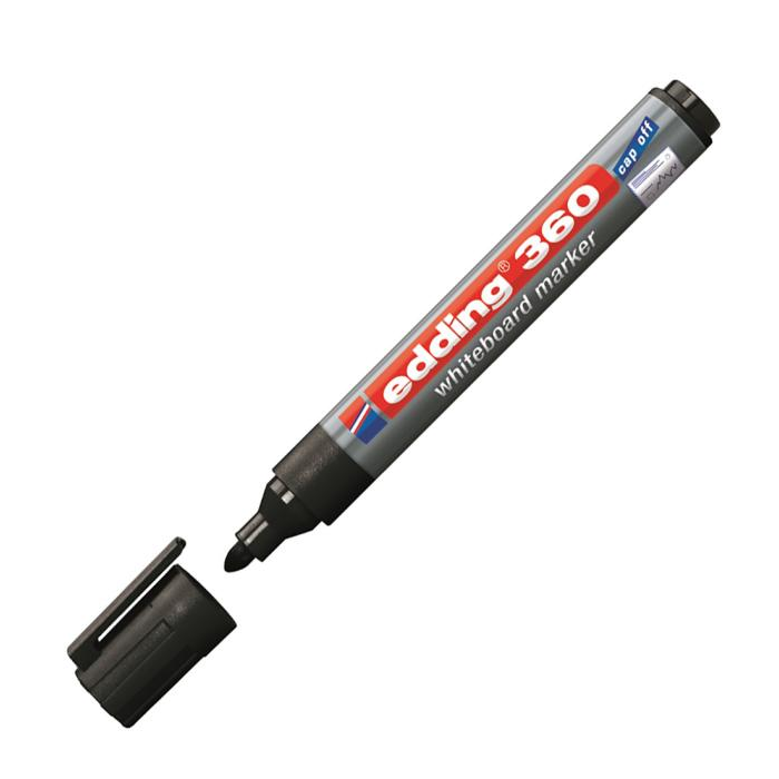 Popisovač vhodný na biele tabule, stierateľný za sucha. Plnený pigmentovým atramentom slabého zápachu bez prísady butylacetátu s vlastnosťou „Cap off“, zabraňujúcou vysychaniu atramentu pri otvorenom hrote aj niekoľko dní. Dopĺňateľný atramentom edding BTK 25. Plastové telo, vymeniteľný hrot. Hrot okrúhly, šírka stopy 1,5---3 mm. Väčšie balenie 10 ks.