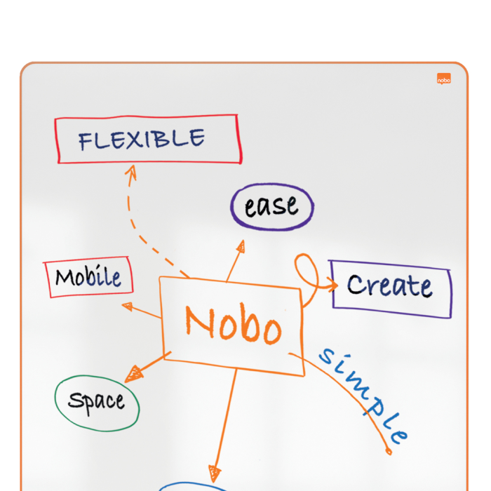 System Move & Meet ponúka maximálnu flexibilitu v akomkoľvek pracovnom prostredí a je ľahko nakonfigurovaný tak, aby dokonale vyhovoval vašim potrebám. Táto ľahká prenosná obojstranná magnetická tabuľa je dokonalým doplnkom k systému a poskytuje vám ďalšie dve plochy na písanie. Doska, ktorú možno nasucho vymazať, má moderný zakrivený rohový dizajn s jemným oranžovým lemom, ktorý sa hodí do každého prostredia. Rozmer tabule 1800 x 900 mm.