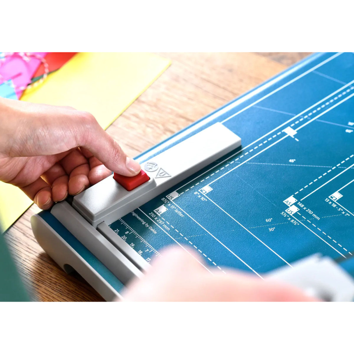 Kompaktná, protišmyková a presná rezačka z pevného oceľového plechu vhodná na rezanie papiera, kartónu, kože, plastu.