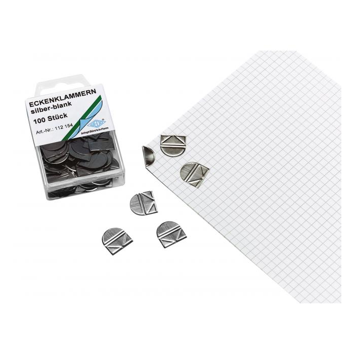 Spony z lešteného kovu na rýchle a ľahké zopnutie materiálu v jednom z rohov. Kapacita 2 - 10 listov. Balenie 100 ks.
